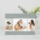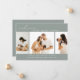 Diese einfache, moderne Foto Collage Geburt Ankündigung Karte ist ideal, um die gute Nachricht von der Ankunft Ihres Babys zu teilen. Es verfügt über eine Collage aus Foto mit drei Fotos auf einem staubigen, schlängelgrünen Hintergrund. Fügen Sie den Namen und die Geburtsdaten Ihres Babys hinzu, um die Karte zu personalisieren.