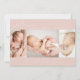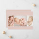Diese einfache, moderne Foto Collage Geburt Ankündigung Karte ist ideal, um die gute Nachricht von der Ankunft Ihres Babys zu teilen. Es verfügt über eine Foto-Collage mit drei Fotos auf einem staubigen, rosa Hintergrund. Fügen Sie den Namen und die Geburtsdaten Ihres Babys hinzu, um die Karte zu personalisieren.
