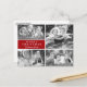 Grußurlaub Postkarte bietet fünf Ihrer Lieblings-Fotos auf einem modernen Gitter gepaart mit klassischem Schriftart in Rot und Drehbuch Familiennamen in Schwarz. Spot um deine persönliche Nachricht hinzuzufügen.