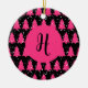 Modern Fuchsia & Black Christmas Tree Monogram Ce Keramik Ornament