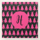 Modern Fuchsia & Black Christmas Tree Monogram Gla Glasuntersetzer