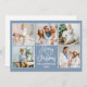 Modern Fun Calligraphy Script Frohe Weihnachten 5 Foto Collage Holiday Card - Dusty Blue Background