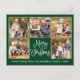 Modern Fun Calligraphy Script Frohe Weihnachten 5 Foto Collage Holiday Postcard - Forest Green Background