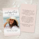 Celebrate the memory of your loved one with this custom personalized prayer card featuring one cherished photo, the title CELEBRATING THE LIFE OF, name and dates on the front and an editable prayer you can change to a heartfelt remembrance message, meaningful poem or bible verse accented with a simple cross on the back in your choice of background colors (shown in blush pink). With its simple yet elegant classic design and elegant script typography, it makes a meaningful keepsake to share at a Celebration of Life, funeral, memorial service, visitation or wake and offers comfort and a lasting photo tribute for family and friends. Its small and portable size of 3.5x2" (wallet-sized) makes it convenient for loved ones to carry it with them as a reminder of your loved one’s life and spirit. Personalization makes each card unique.