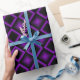 Modern geometric pattern wrapping paper. The design features a srtiking black and purple diamond pattern with glowing purple outlines, creating a 3D or optical illusion effect. This elegant gift wrap suitable for birthdays, formal events, or any other special occasions.