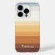 Minimalistisch gestreifte Telefonzelle in Orange-, Gelb- und hellbraunen Farbtönen mit blauem Akzent. Sie können es personalisieren, indem Sie den Namen ändern.