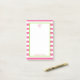 Dieses 4 x 6 Notizblock mit einem rosa und weiß gestreiften Hintergrund mit einem hellgrünen Rand und einem rosa 1. Initial in der oberen Mitte und voller Name am unteren Rand ist perfekt für jede Frau, die Sie kennen! Mit seinem spaßigen gestreiften Muster ist klassisch und hübsch und würde wunderbar auf jedem Schreibtisch aussehen und ein perfektes Geschenk für Freunde, Mitarbeiter oder Familie machen.