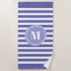 Hübsches und trendiges Strandhandtuch mit Cabana-Streifen in blau violettem Schatten) und weiß gestreiftes Muster mit einem Monogramm in einem abstrakten Randkreis. Einfach anpassen, indem Sie auf die Schaltfläche Anpassen klicken.