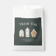 Whimsical Christmas theme baby shower favor bag featuring illustration of gingerbread houses with blue accent.