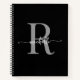 Modernes, einfaches, elegantes Schwarz-Grau Monogram Initial Name Feminine Signature Script Spiral Notebook. Dieses minimalistisch schlichte Farbdesign mit Ihrem Vornamen in einer hübschen Hand geschwaschenen Schwanz-Schriftart Typografie (oder Kalligrafie), Monogramm Initialvorlage, leicht zu personalisieren. Große personalisierte Girly-Gabe für Geburtstagsparty, Hauswärmung, Hochzeit, SWEET 16 Geburtstagsparty, Brautparty, BABY Dusche und für alle, die hübsch minimalistisch Lieben.