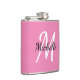 Modern Girly Pink Monogram Name + Initial Flachmann