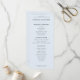 Guide your guests through your special day with the architectural elegance of the Metropolitan Emerald wedding program. This tall, modern rack card serves a dual purpose: the front features a clean, center-aligned timeline that flows seamlessly from the Ceremony to the Cocktail Hour and Reception, keeping everyone informed of the evening's events. The reverse side showcases your Wedding Party and family members against our signature "Warped Grid" pattern—a subtle, undulating white texture on a serene Glacial Ice blue background that adds contemporary depth to the list of names.