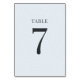 Guide your guests effortlessly to their seats with the Metropolitan Emerald table number. This chic, double-sided card features our signature "Warped Grid" pattern—a subtle, undulating white texture on a serene Glacial Ice blue background. The bright, airy design ensures the large Charcoal number is visible from across the room, while contrasting beautifully with darker table elements like our Emerald Arch menu cards for a balanced, modern tablescape.