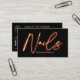 Moderne glam orangefarbene Neonnagel Techniker Maniküre Skript-Logo qr Code Visitenkarte, fügen Sie Ihre sozialen Medien, Logo und qr-Code