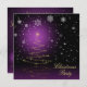 Eine glänzende und schneebedeckte Weihnachtsabbild mit einem glänzenden Weihnachtsbaum und Schneeflocken auf lila Hintergrund.