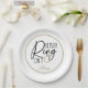 Modern Gold Black Name Er setzte einen Ring auf es Papier Teller. Design hat einen Ring mit Verlobungen. Ideal für Junggeselinnen-Abschied für die Braut zu sein.