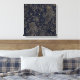 Modern Gold Blue Floral Doodles Line Art Leinwanddruck