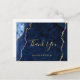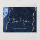 Modern Gold Blue Marble Agate Wedding Vielen Dank Postkarte