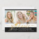 Moderne Collage Abschluss-Ankündigung mit 3 Fotos vorne und 1 auf der Rückseite mit moderner metallischer Goldkalligraphie-Schrift für den Titel GRADUATE mit einem goldenen Graduierungspapier versehen und personalisiert mit dem Namen, dem Jahrgang Ihres Absolventen und dem High School- oder Universitätsnamen in einer bearbeitbaren schwarzen Hintergrundfarbe (wählen Sie eine Schulfarbe oder eine ergänzende Farbe für Ihre Fotos). Auf der Rückseite finden Sie Details zu Ihrem Absolventen. HILFE: Für Hilfe bei der Modifikation/Personalisierung des Designs, bei der Übertragung des Designs auf ein anderes Produkt oder wenn Sie Gegenstände koordinieren möchten, wenden Sie sich bitte an den Designer, BEVOR Sie über Zazzle Chat oder makeitaboutyoustore@gmail.com bestellen.