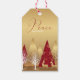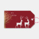 Weihnachtsgeschenk-Tag | Tiefer Maronrot auf einer Seite mit zwei weißen Hirschen und einem goldenen Winterbaum - Weltfrieden mit moderner Winterszene auf der Rückseite