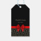 Dieses feminine und klassische Geburtstagsgeschenk-Tag bietet eine ägyptische geometrische Hochzeitgold-Kontur und rotes Bugband auf schwarzem Hintergrund. Der gesamte Text kann nach Ihren Wünschen angepasst werden.