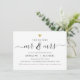 Diese minimale Einladung glänzt durch ihre Einfachheit. Eine schöne Schrift mit Schnörkeln lautet "The Future Mr. and Mrs." neben Ihren persönlichen Feierlichkeiten Details in der modernen Typografie. Oben sitzt ein zartes Imitat goldenes Herz. Dies ist die aktualisierte Version.
