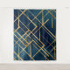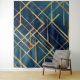 Elegantes minimalistisches geometrisches marineblaues, blaues Ombre und goldenes Muster, gefüllt mit dunkelblauen Farbverläufen und metallischen Golddreiecken, Quadraten, Diamanten und rechteckigen Formen, mit einer phantastischen modernen Linien geometrische Abbildung. Stilvolles, elegantes und schlichtes Design in Linien und Formen, das in die moderne luxuriöse Dekoration eingebunden werden kann.