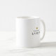 Eine maßgeschneiderte Tasse für Brautpaare mit klassisch moderner Kalligraphie und Goldherz-Design.