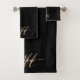 Ein einfaches, mit Monogramm Handtuch-Set für die Badezimmerdekoration. Gold monogramm weiße Skript, auf schwarz. Chic Swash Skript.