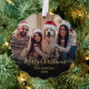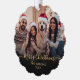 Moderne Niedliche Minimalistische Gold Script 2 Foto Frohe Weihnachts Script Holiday Ornament Card. Dieses festliche, schlichte, minimalistische, skurrile Grußkarten-Template aus zwei Fotos enthält Familienname, Year und einen "Frohen Weihnachten" Grußtext, der in einem handgeschriebenen Wirblen Swash-Schwanz-Schriftart Goldkalligraphie-Foto-Overlay auf schwarzem Farbverlauf geschrieben wird. Hübsche Grußkarte für Ihre Familie und Freunde in der Weihnachtszeit.
