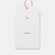 Ein einfaches, modernes Weihnachtshängeschild mit goldenen Weihnachtsmalereien auf der Vorderseite und von und nach hinten zum Geschenk. Fügen Sie Ihren Urlaubsgeschenken und Backwaren etwas Flair hinzu. Die Hintergrundfarbe ist vollständig anpassbar, sodass sie einfach Ihrem Farbschema entspricht.