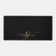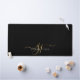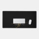 Eine elegante, moderne mit Monogramm Schreibtischmatte im minimalistischen Stil mit einem serifenlosen Sans-Namen und eleganten goldenen Swash-Schriftzeichen auf schwarzem Schreibtisch. Für Zuhause oder Büro.