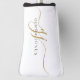 Ein elegantes, modernes, minimalistisches mit Monogramm Golftappercover mit Sans Serif-Namen und eleganten Golden Swash-Schriftzeichen auf Weiß.