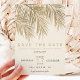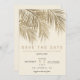 Moderne, einfache Imitate Goldpalme mit einfacher Typografie, ein trendiges und Save the Date tropisches Hochzeitstil auf Palmenblättern mit Elfenbein aus Weiß.