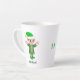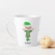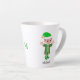 Elegant, cute good luck elf with script and monogram Latte Mug. Ideal for everyone. Ideal for a Christmas or Birthday gift. Text can be personalized with your text. Monogram at the center side.
