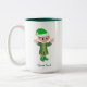 Modern Good Luck Elf with Script and Monogram Mug Zweifarbige Tasse