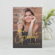 Modern signature script Graduation Announcement and invitation with 4 photos in black and gold, simple and fun. Custom it with your own photos and grad party information.
