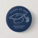 This graduation button features an elegant hand drawn doodle of a graduates cap with a tassel. Simple modern with the text "Class of" and the name of your high school or collage. Add your graduate year and school to customize.