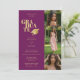 Modern Graduate Collage 3-Photos in Plum and Gold Effect Invitation Card Design with a Glitter Effect Graduation Cap.