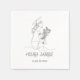 Modern Graduation Black & white line art graduate Napkins . This personalized custom Napkins featuring a delicate stylish black and white line art drawing illustrating a graduate woman in profile adorned with a classic grad cap gracefully holding a rolled diploma and a vibrant bouquet of flowers, isolated on a white background, with elegant manuscript hand lettered typography.