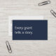 A modern, minimalist business card perfect for grant writing professionals. The front features a deep navy blue background with the phrase "Every grant tells a story" in soft white text. The reverse has a soft white background with dark charcoal grey text and space for your contact details. All text on the card is fully editable.