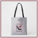 Die Welt verbessern: lass Frauen an der Spitze! Niedlicher Totbeutel in lila-schwarz auf neutralem grauem Hintergrund - mit High-Heel-Schuh und beerfarbenem Kuss.