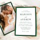 Set a refined and classic tone for your wedding with this dark green photo wedding invitation, featuring a rich green border and a sophisticated blend of serif lettering with calligraphy script accents. The couple’s names are presented in elegant serif type, while the script details add a soft, romantic contrast. The back of the invitation displays your vertical engagement photo framed by the same deep green border, creating a cohesive and polished look that feels timeless and well-suited for estate, formal, and nature-inspired celebrations.