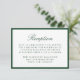 This reception enclosure card is framed by a rich dark green border and features “Reception” in graceful calligraphy with your reception details arranged below in classic serif text. The deep green tone brings depth and formality to the layout, creating a timeless presentation well-suited for estate, traditional, and modern classic wedding settings.