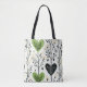Modern Green Heart Botanical Tote Bag