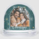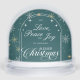 Celebrate the season with a snow globe that captures your favourite holiday moment. This design features delicate snowflakes and a custom Christmas greeting on a teal green snowflakes background, with space on the back for a treasured family photo and name. A thoughtful keepsake for any family holiday display, this globe is customizable to reflect your unique style. Perfect for heartfelt gift or cozy home decor.
