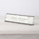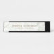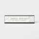 Dieses moderne Schreibtischschild mit weißem und grünem Palmenblatt ist mit elegantem, goldfarbenem Text versehen.