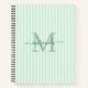 Write in style with this elegant personalized notebook, designed to add a chic touch to everyday notes, journaling, or planning. Featuring a soft green and white striped background, the cover is customized with your monogram initial and name in a fancy script font, creating a timeless and feminine stationery essential.