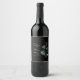 Modern Greenery Black Wedding Wine Label Weinetikett