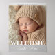 Modern Grey and White Photo Birth Announcement Poster